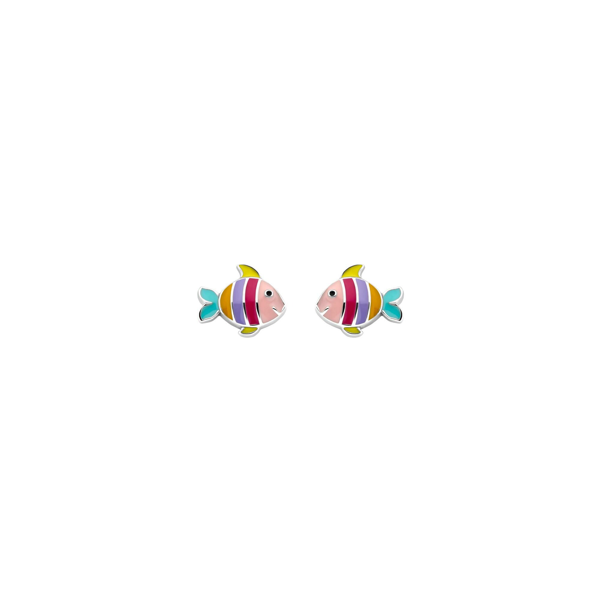 Boucles d'oreilles Orage Kids poisson en argent rhodié et émail multicolore